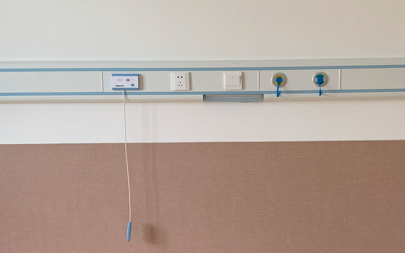 病房分為2人間和3人間,每個床頭配置一個氧氣終端、一個吸引終端、一個呼叫器、一個86五孔插座、一個閱讀燈和開關(guān)。