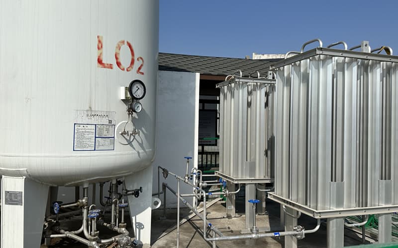 中心供氧站采用5立方液態(tài)氧儲(chǔ)罐,兩個(gè)50立方/小時(shí)的汽化器,通過(guò)管道輸送到大樓