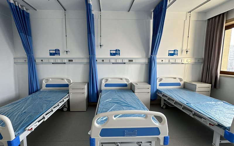 病房床頭安裝鋁合金設(shè)備帶,每個(gè)床頭安裝氧氣接口、吸引接口、呼叫器、開(kāi)關(guān)插座和照明設(shè)備。