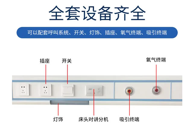 | 端口(床位)數(shù)量 | 管道與管道設(shè)備、病房設(shè)備帶、氣體終端、呼叫對講系統(tǒng)、配電照明 | |||