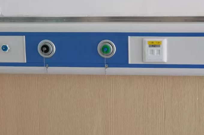醫(yī)用氧氣末端設(shè)備主要由檢修閥門和氧氣終端組成,安裝載體一般為病房通鋪條形設(shè)備帶,手術(shù)室的氧氣終端一般安裝在醫(yī)用吊塔或者手術(shù)室墻壁上。