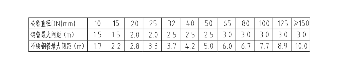 醫(yī)用氣體管道中我們常常會用到醫(yī)用紫銅管和304不銹鋼管,如有甲方要求也可用鍍鋅鋼管。紫銅管管徑Φ8~Φ133可供選擇,常見的進病房管道用的就是Φ8的紫銅管。不銹鋼管管徑Φ6~Φ325可供選擇。那么我們在醫(yī)用氣體管道工程中,安裝前,我們需要核對好項目所需管道管徑——管道走向——管道在現(xiàn)場的定位——勘測管路安裝路線并確定管路的安裝位置——制作、安裝管道支架。下圖為管道安裝表: