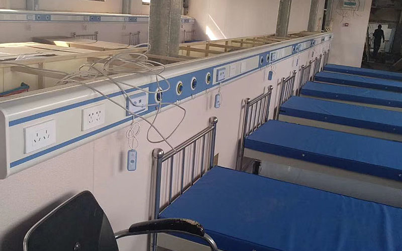 中心供氧系統(tǒng)由氧氣站、供氧管道、穩(wěn)壓箱、閥門、氧氣終端、報警裝置、濕化瓶或呼吸機(jī)組成;壓縮空氣系統(tǒng)主要由空氣壓縮機(jī)、儲氣罐、干燥機(jī)、過濾器、輸氣管道、閥門組成;負(fù)壓吸引系統(tǒng)的配置原理與供氣系統(tǒng)相同,由吸引站、輸氣管道、檢測報警裝置和吸引設(shè)備組成。